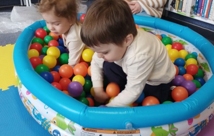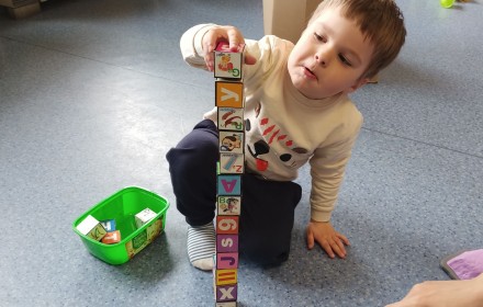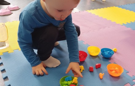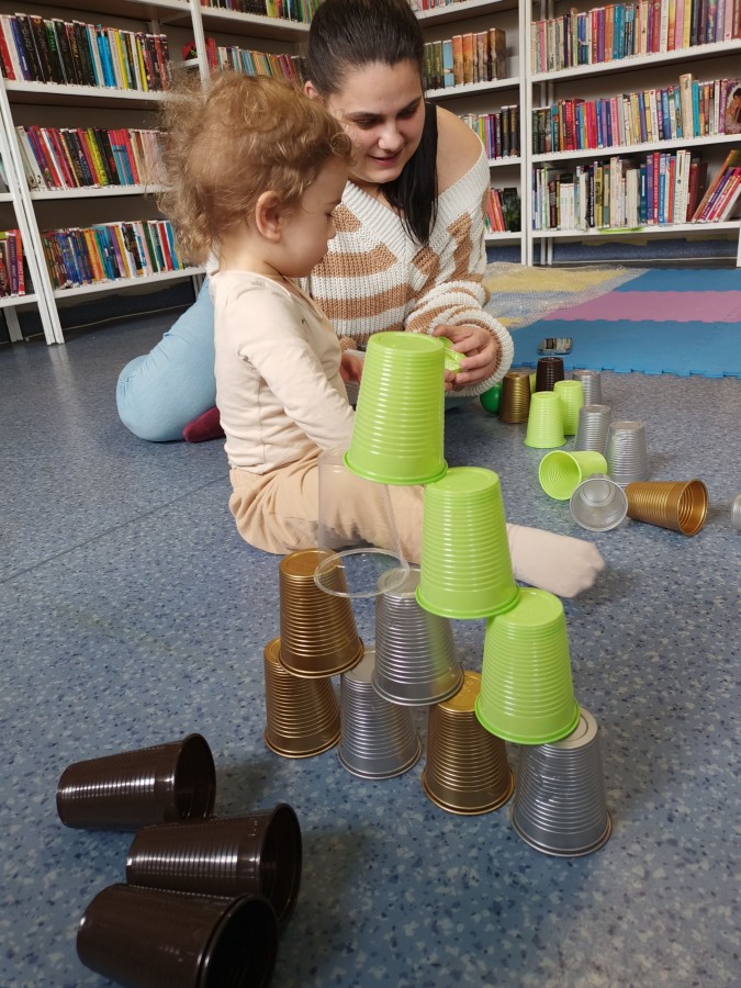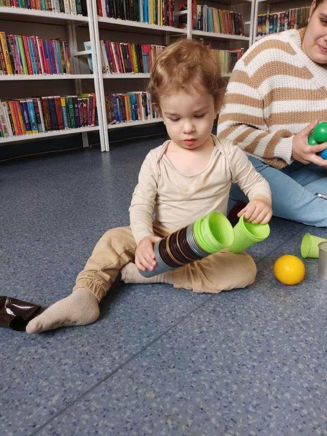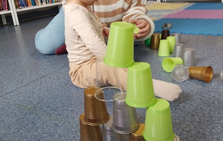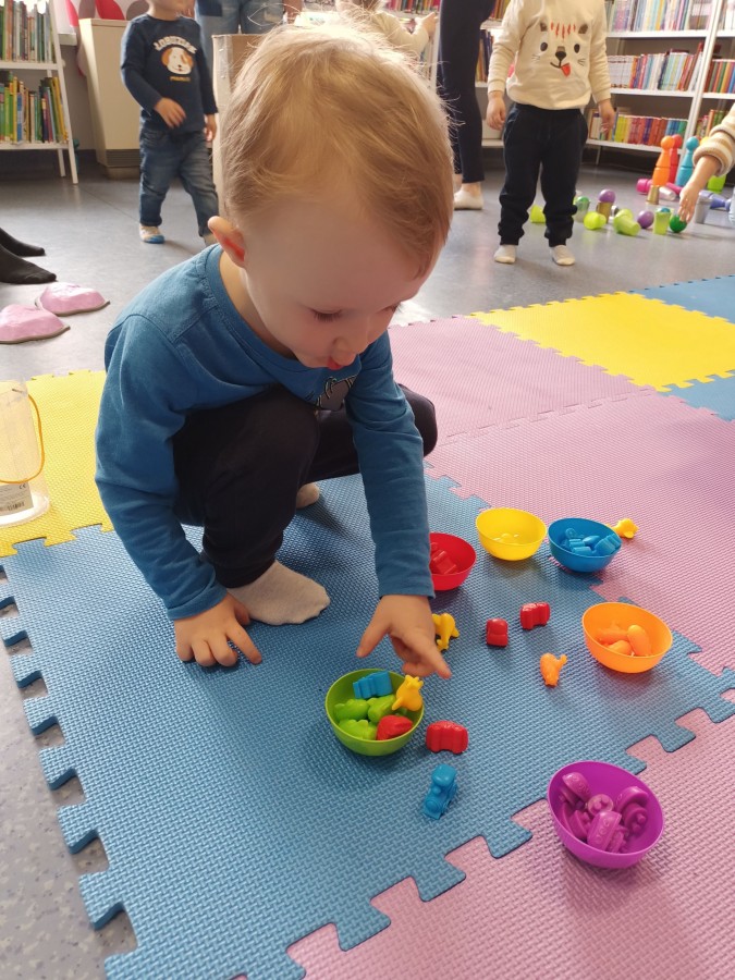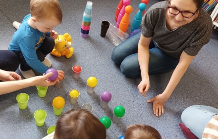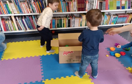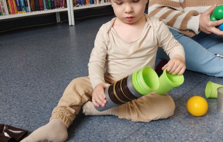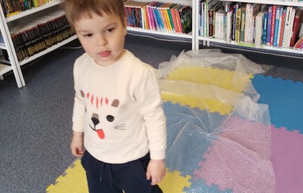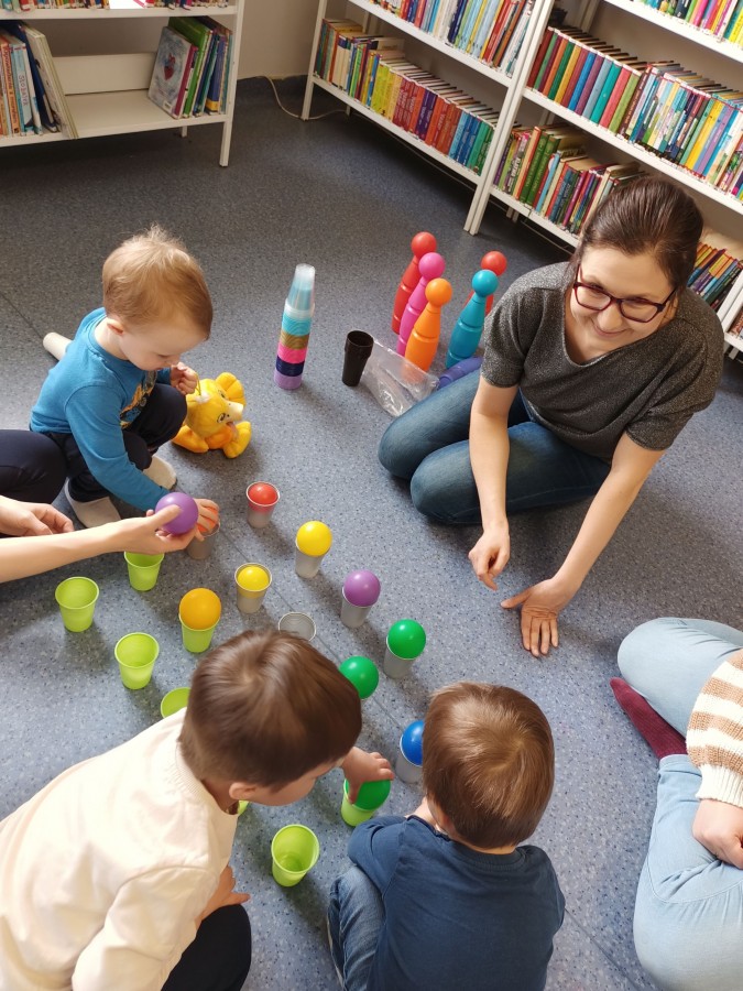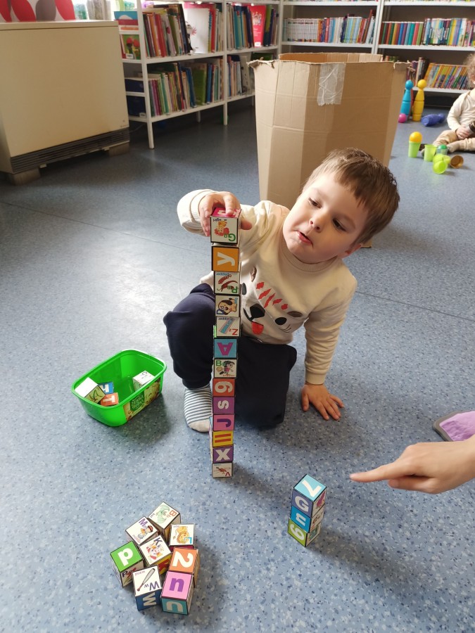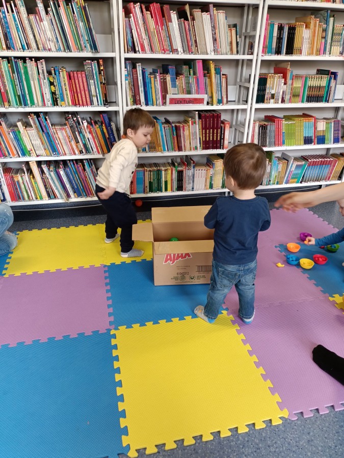 17 kwietnia w Filii nr 10 mali uczestnicy Grupy Zabawowej mogli wykazać się sprawnością, cierpliwością, kreatywnością i pomysłowością. Dzieci miały możliwość zagrania w kręgle, chodzenia po kamieniach, po folii bąbelkowej, rzucały do celu piłeczkami, budowały wysokie wierze z klocków oraz kolorystycznie układały zabawki.