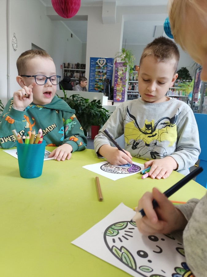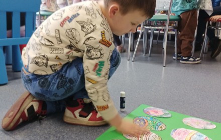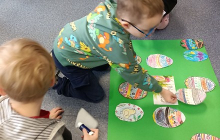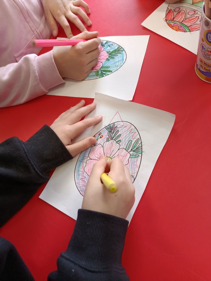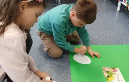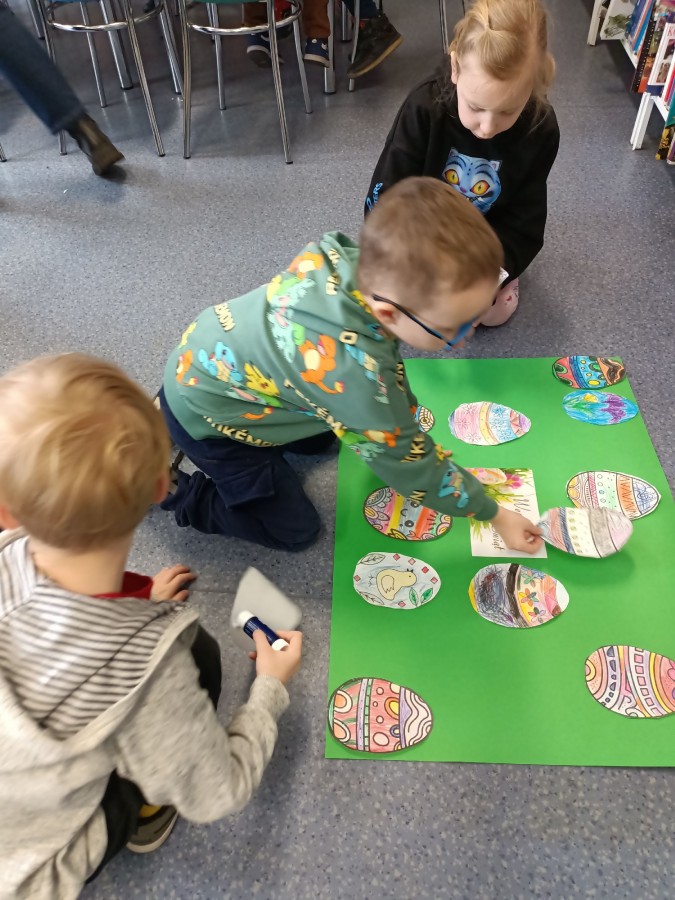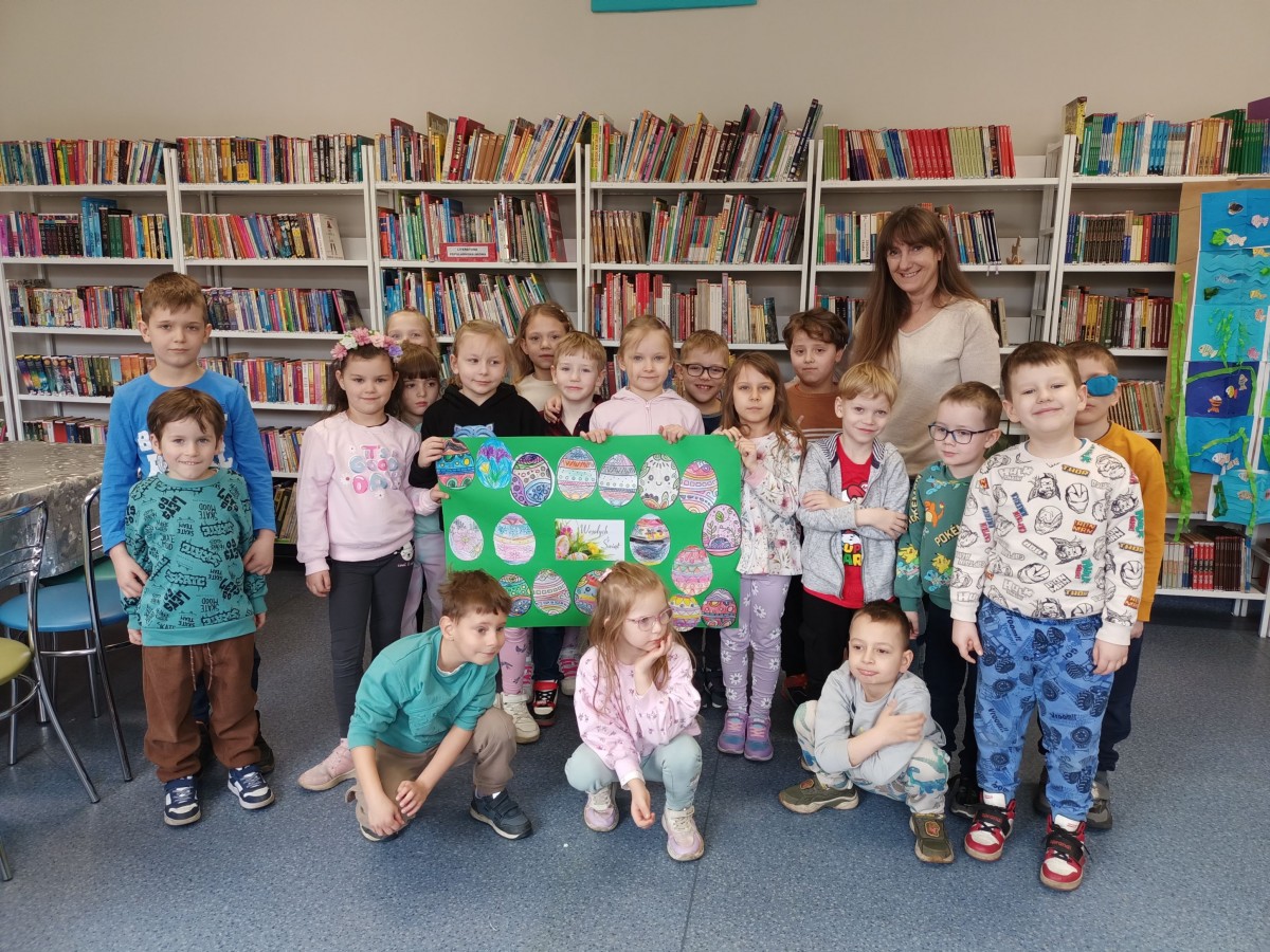 30 marca w Filii nr 10 odbyło się przedświąteczne spotkanie z grupą Biedroneczki z Przedszkola nr 9, podczas którego przedszkolaki wysłuchały bajki „Wielkanocne porządki w domu Zajączków”. Po wysłuchaniu opowieści dzieci rozmawiały na temat tradycji oraz przygotowań do Świąt Wielkanocnych. Następnie wykonały prace plastyczne, przedstawiające kolorowe jajka ?