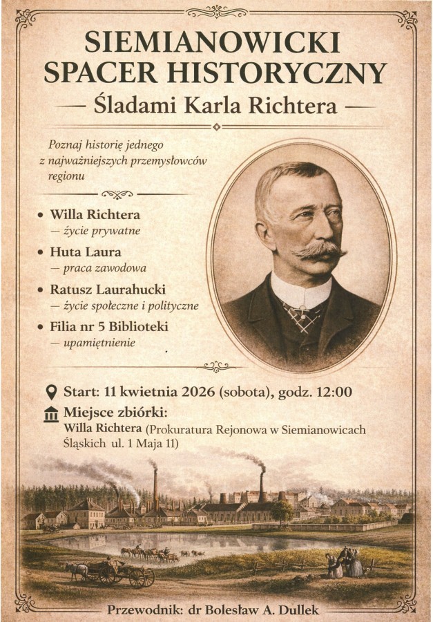W minioną sobotę odbył się wyjątkowy spacer historyczny zorganizowany przez Filię Nr 5 Siemianowickiej Biblioteki. Tym razem wspólnie odkrywaliśmy historię jednego z najważniejszych przemysłowców związanych z naszym miastem – Karla Richtera.