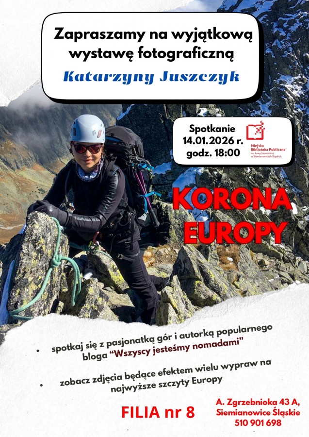 14 stycznia o godz.18:00 w Filii nr 8 (Zgrzebnioka 43a), szykuje się fantastyczne spotkanie z dziewczyną, która wchodzi na góry szybciej, niż większość z nas wchodzi w nowy tydzień!