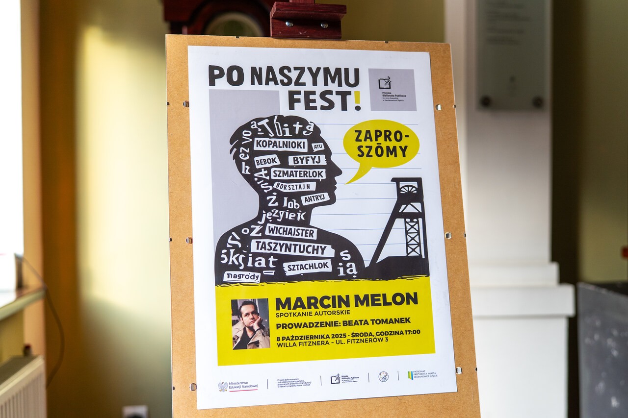 Spotkanie z Marcinem Melonem w Willi Fitznera było prawdziwą przyjemnością! Autor opowiadał nie tylko o swojej twórczości, ale także o bogactwie literatury powstającej po śląsku – z humorem, pasją i dumą z regionalnych korzeni. Rozmowę znakomicie poprowadziła Beata Tomanek, dbając o ciepłą, swobodną atmosferę i inspirującą wymianę myśli. Było dużo śmiechu, ciekawych opowieści i – co najważniejsze – dużo godanio!
