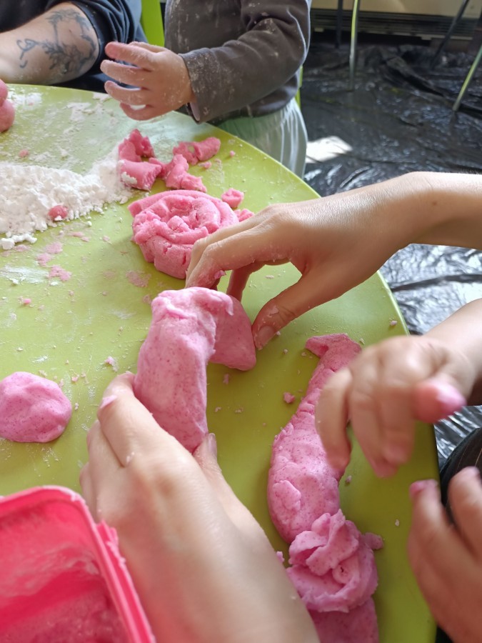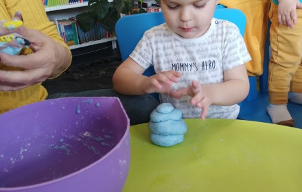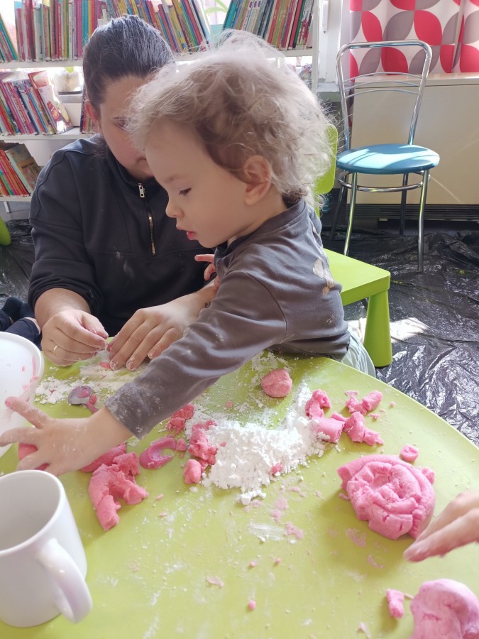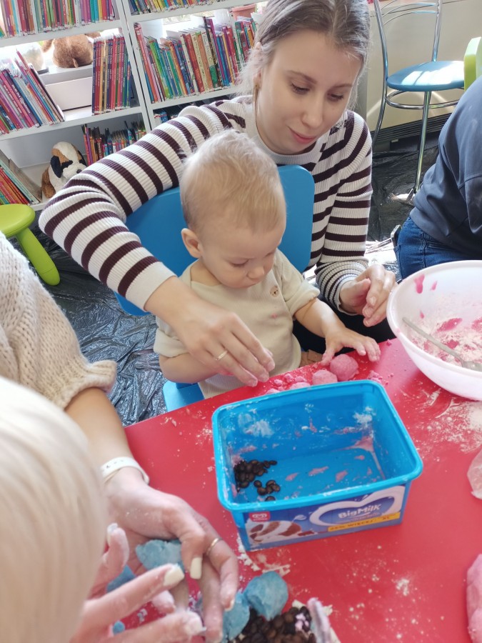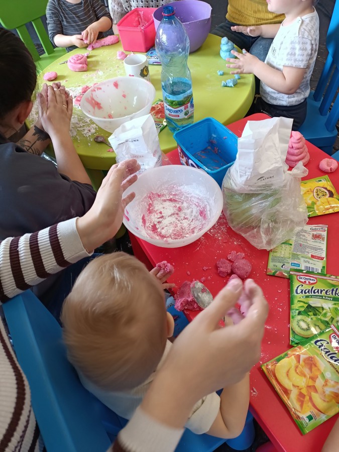 10 kwietnia w Filii nr 10 odbyły się zajęcia Grupy Zabawowej, podczas których tworzyliśmy masę do lepienia różnych kształtów. Tym razem tą masą była żelkolina, wykonana z galaretki, mąki i odrobiny wody. Dzieci z dużym zaangażowaniem i kreatywnością tworzyły różne kształty i postacie ?
