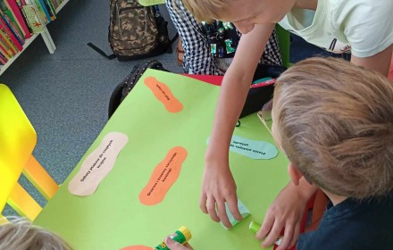 Strona główna Archiwum Powitanie jesieni na Filii nr 10. Archiwum 21.09.2023 Powitanie jesieni na Filii nr 10. W tym tygodniu w Filii nr 10 powitaliśmy jesień wspólnie z uczniami klasy III B SP nr 20. Uczniowie opowiadali o zmianach, jakie zachodzą w przyrodzie o tej porze roku oraz wykonali kolorowe prace plastyczne