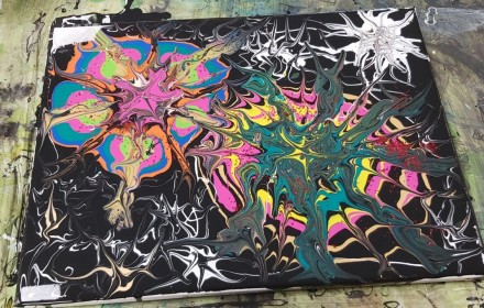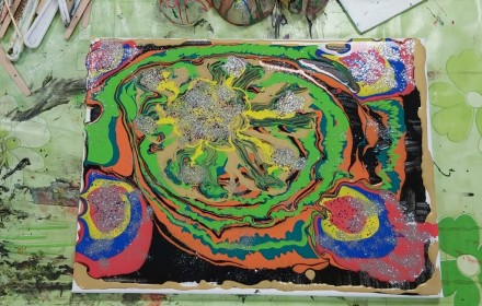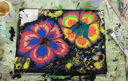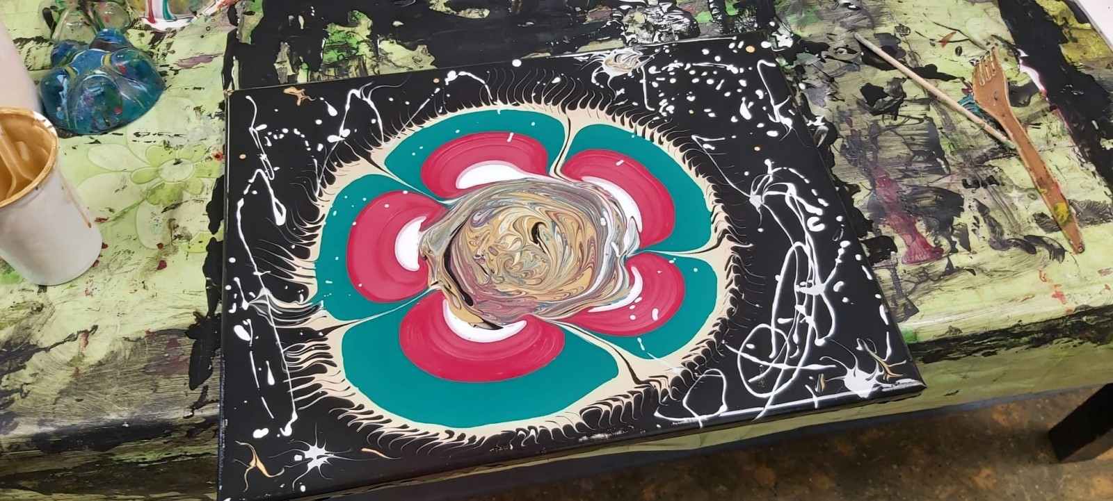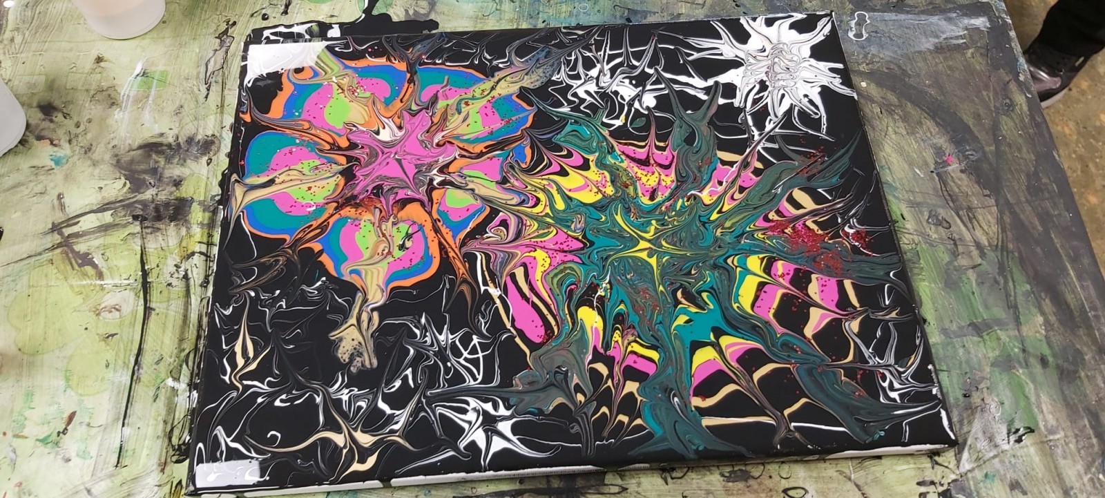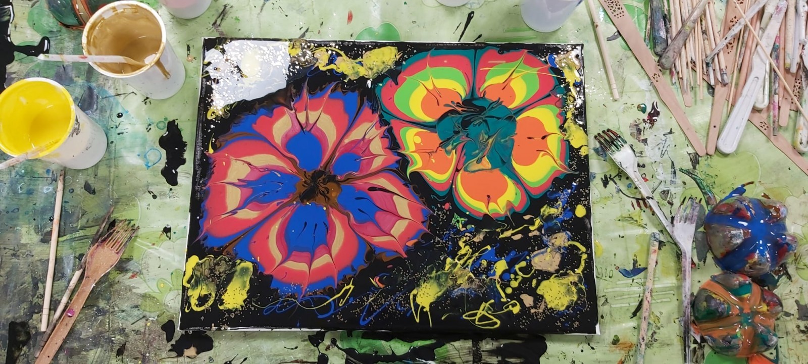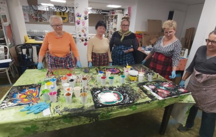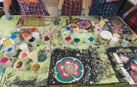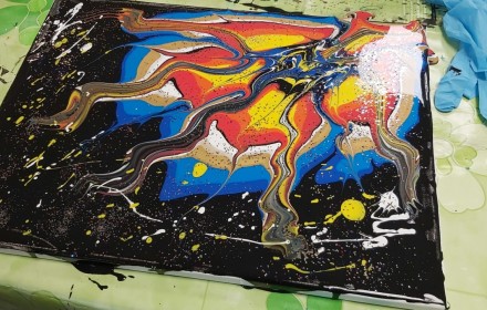Tym razem uczestnicy "Silversów w Bibliotece" wzięli udział w warsztatach pt. "Pouring - tańczące kolory". Pouring, to technika nazywana też malowaniem przez wylewanie, która polega na tworzeniu abstrakcyjnych obrazów poprzez rozlewanie farb zmieszanych ze specjalnym medium na wcześniej przygotowany podkład. Wydarzenie poprowadziła Dorota Micior-Gajewska w Pracowni Plastycznej "Okienko" w SCK Bytków. Za pomocą farb akrylowych uczestniczki wyczarowały abstrakcyjne, pełne barw obrazy.