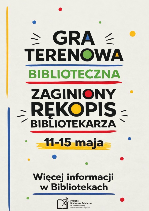 Strona główna Nasza oferta Gra - Zaginiony rękopis Bibliotekarza https://www.mbpsiemianowice.pl/filie Tu będzie opis
