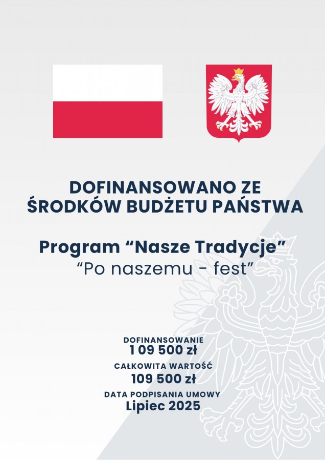 „Projekt dofinansowany ze środków budżetu państwa, przyznanych przez Ministra Edukacji w ramach programu Nasze tradycje”.