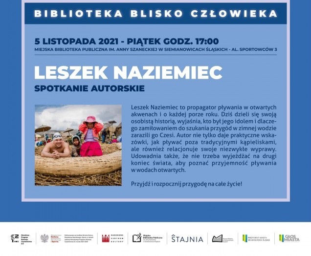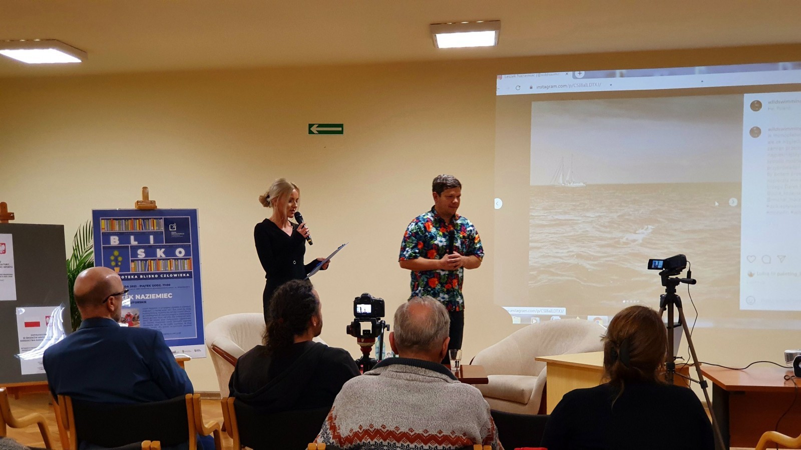 5 listopada 2021, w piątkowe popołudnie mieliśmy przyjemność gościć Leszka Naziemca wraz z jego pierwszą książką noszącą tytuł „Dzikie pływanie”! Pasjonat pływania, wielbiciel podróży, koneser karkołomnych wyzwań, a teraz również i pisarz. To nietypowe połączenie pozwoliło stworzyć wyjątkową atmosferę na spotkaniu autorskim, które okazało się być najprawdziwszą wyprawą w niezwykły świat naszego gościa.