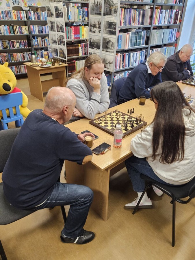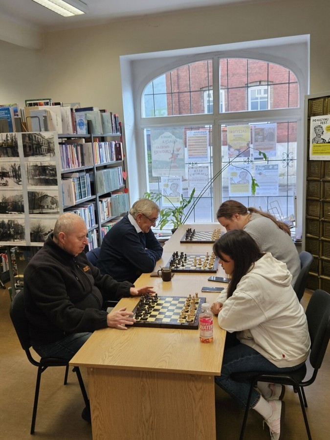 Na Filii nr 5 odbyły się rozgrywki szachowe. Podczas spotkania uczestnicy rozegrali wiele emocjonujących partii. Udało się nawet przeprowadzić lekcje podstaw szachów dla nowicjuszy! Spotkaniu towarzyszył słodki poczęstunek, inspirujące rozmowy (nie tylko na temat szachów ? ) i sympatyczna atmosfera. Wszystkim uczestnikom serdecznie dziękujemy za obecność, zaangażowanie i dzielenie się pasją!