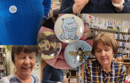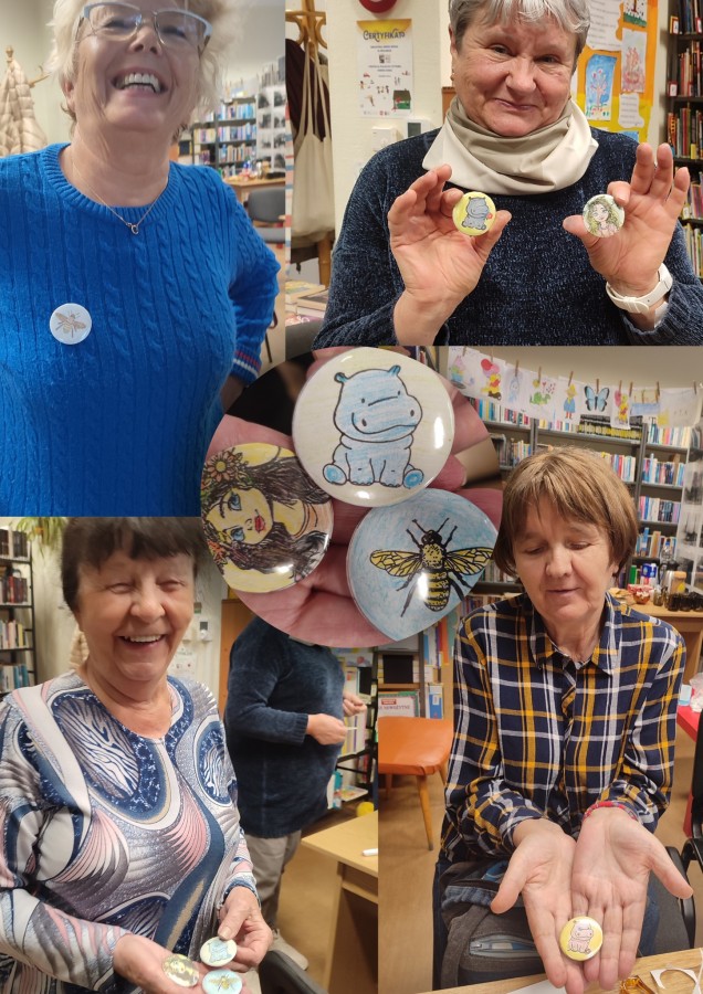 Wczoraj w Filii nr 5 odbyły się warsztaty plastyczne ze zdobienia przypinek. Podczas zajęć uczestniczki spotkania miały okazję puścić wodze fantazji i stworzyć własne przypinki! Każda była wyjątkowa, ozdobiona kolorowymi rysunkami